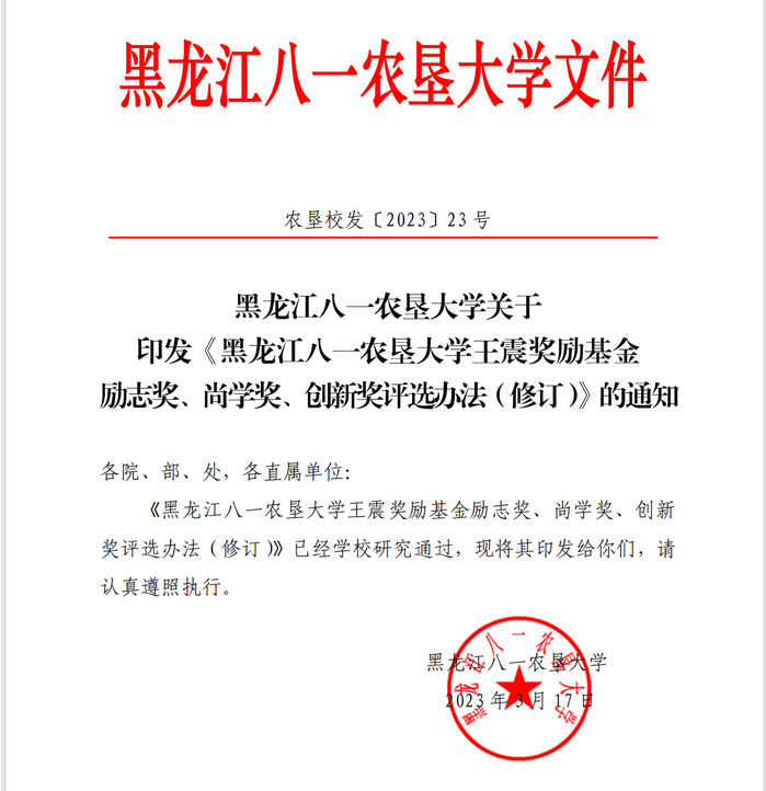 第二十条 《U8国际关于印发<黑龙江八一农垦大学王震奖励基金励志奖、尚学奖、创新奖评选办法>等 2 个文件的通知》(农垦校发〔2014〕13 号)中原《U8国际王震奖励基金励志奖、尚学奖、创新奖评选办法》同时废止。