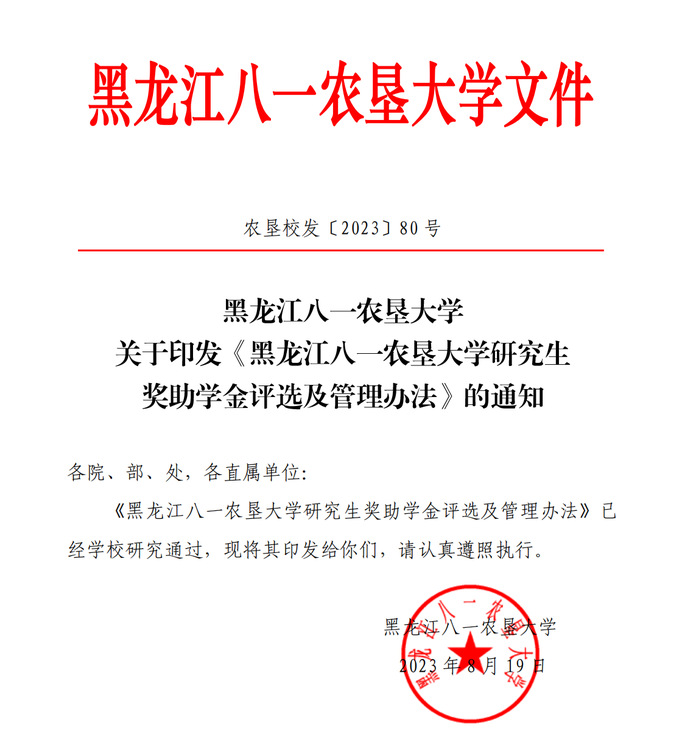 第十六条 本办法自印发之日起施行。《黑龙江八一农垦大学研究生奖助体系改革实施方案(试行)》(农垦校发〔2021〕61 号)同时废止。