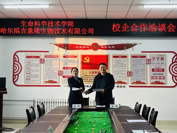 1月12日下午,哈尔滨吉象隆生物技术有限公司来公司进行校企合作洽谈会。公司领导班子成员、专业教师及就业辅导员与吉象隆生物技术有限公司质量管理副总监王丽莉、人资经理刘莉就本科生实践实习、“3+1”校企协同育人、科研合作等方面进行了深入交流。