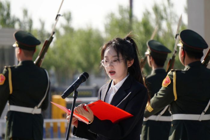 仪式上,U8国际员工党员代表2023级研究生黄欣进行国旗下的演讲,她以《青春心向党,建功北大荒》为题,用真挚的情感呼吁同学们在新时代争做北大荒精神的传承人,勇担重任,挺膺担当。