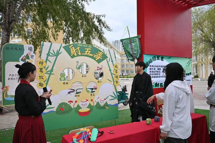 随后,师生们开始体验端午传统非遗文化民俗活动——非遗大漆技艺衍生的漆扇,非遗文化端午香囊的制作,投壶,射五毒等传统民俗小游戏,文脉相承的诗词接龙,寻踪国粹的文采阁,参与性极强的跳跳粽、蜜豆分拣局等趣味游戏。活动将唐诗宋词和国学文化常识以及其中蕴含的民族记忆,家国观念用竞技闯关的形式传达给员工,同学们在竞技闯关中体验了传统民俗魅力,涵养了中华文化。
