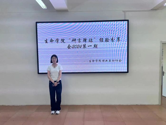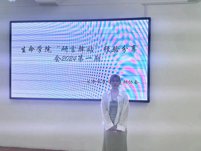 第二位进行分享的是生物学专业2022级硕士研究生侯文爽同学,中共党员。研究生在读期间,她专注学科前沿,她参与发表SCI论文4篇,发表国内论文15篇,并参与授权国家发明专利1项,在此次交流会上,侯文爽为同学们分享了在任职团支书过程中的心得,并讲述了她的学习经验,强调了专业基础课的重要性,让同学们在求知过程中要做到求真务实,锲而不舍。