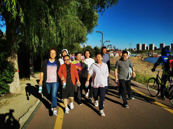 随着工会主席李喜梅一声枪响,老师们争相出发。途径打卡点,志愿者为教师们按下祝福的小印章。一路老师们欢声笑语,充分交流。