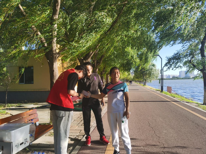 活动起点设在滨湖广场大温度计处,逆时针一圈。全长6.7公里。沿途设置打卡地点。本次外活动分为环湖跑、 环湖走、环湖骑行几个组别。