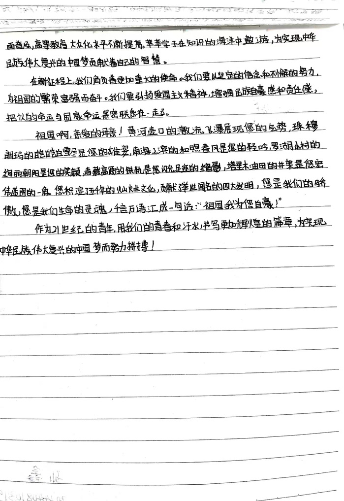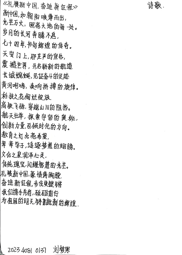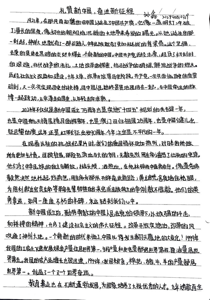 此次“礼赞新中国,奋进新征程”主题征文活动,不仅为他们提供了一个展示才华的机会,还进一步激发了他们的爱国热情,为新时代的发展注入了强大的精神动力。通过本次活动相信他们在新的征程上将以更加坚定的信念、更加饱满的热情,为实现中华民族伟大复兴的中国梦而努力奋斗!