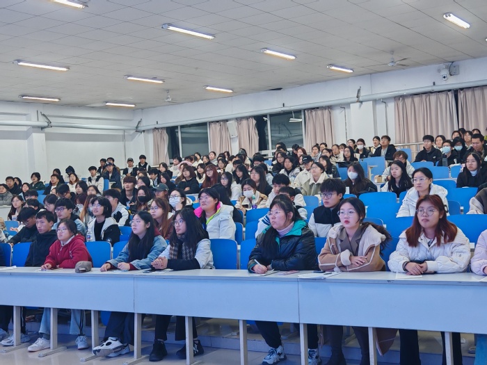 在观看活动现场,气氛庄严肃穆。同学们聚精会神地盯着屏幕,随着视频的播放,不时发出阵阵赞叹和感慨。大家被杨士莪院士胸怀祖国、志存高远的家国情怀、追求真理的钻研精神、敢为人先的创新精神和勇担时代重任的斗争精神所深深打动。