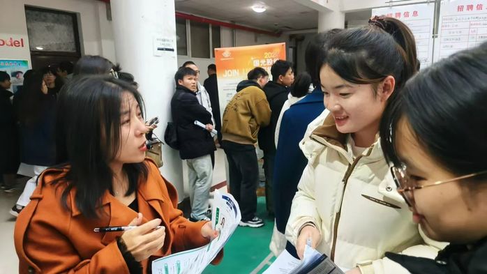 来自五个公司的800余名员工参加了此次招聘会。参会毕业生准备充分,携带着精心制作的简历,积极与招聘人员进行交流,并结合自身能力和需求,选择意向单位投递简历。双选会现场还设置了咨询服务台,为毕业生提供暖心的一站式就业指导服务。