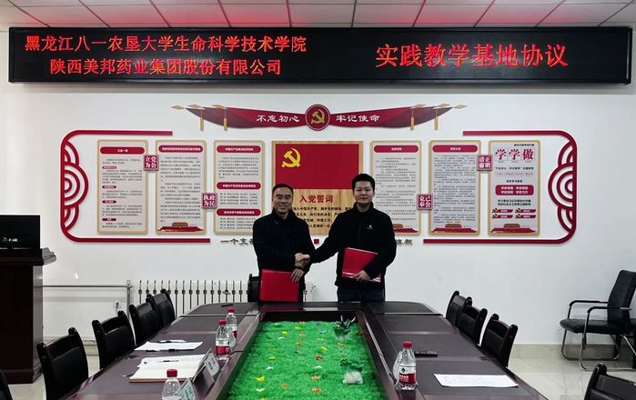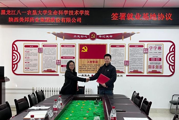 会上教学副经理王景伟从公司学科平台建设、科学研究方向以及公司人才培养介绍了公司的基本情况;刘高阳介绍了公司的发展战略、业务领域以及对人才的迫切需求。经过深入细致的沟通交流,双方在与会代表的相互见证下共同签署了黑龙江八一农垦老员工命科学技术公司-陕西美邦药业集团股份有限公司就业基地协议和实践教学基地协议。