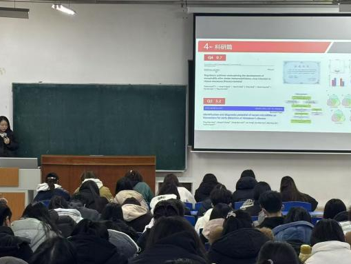第二位进行分享的是生物学专业2022级硕士研究生邢思雨,中共党员。她发表中文核心期刊论文1篇,主持研究生创新项目1项,取得发明类型专利1项,参加国家级学术会议1次。在此次交流会上,邢思雨从科研项目攻坚、实验技巧打磨,到论文撰写发表,以亲身经历铺就实用“攻略”,助力同学突破科研困境。