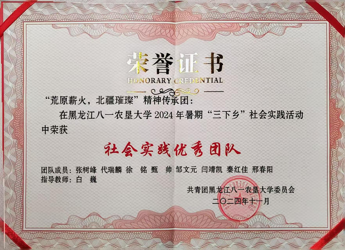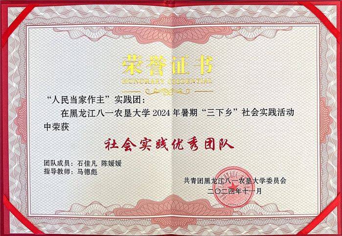 11月27日,在校团委举办的2024年暑期“三下乡”社会实践表彰答辩会中,公司“人民当家作主”实践团和“荒原薪火·北疆璀璨”北大荒精神文明传承团两支团队,双双获评公司2024年暑期“三下乡”社会实践活动“优秀实践团队”,张树峰和石佳凡荣获“社会实践先进个人”。