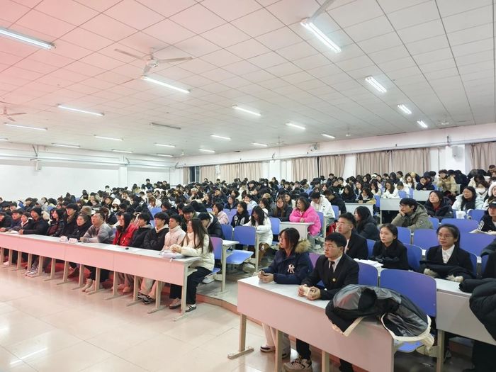 为深入学习贯彻党的二十届三中全会精神,充分发挥先进典型的示范引领作用,加强公司学风建设,弘扬公司优秀员工先进事例,激励广大青年学习先进,争当模范,由员工处主办、U8国际承办的“星火菁华·党的二十届三中全会精神暨先优事迹宣讲团”巡回宣讲活动第十场于12月5日,在主楼124教室举行,员工处思想教育科科长张春秋、公司辅导员胡东旭及24级全体新生参加活动。