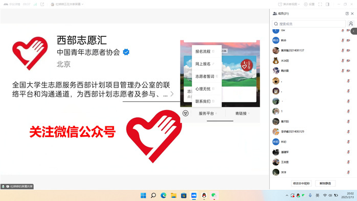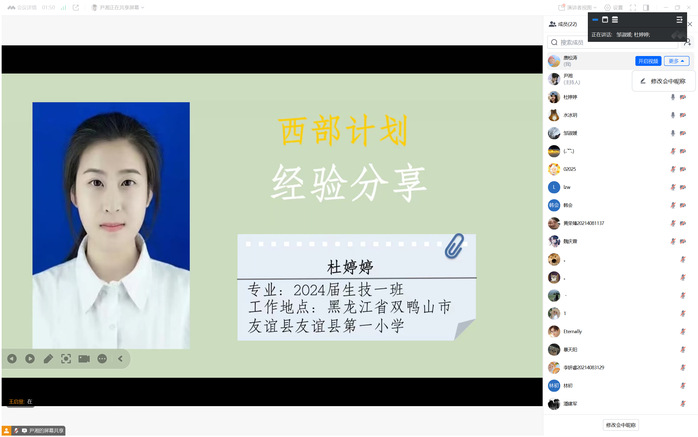 员工们结合自身经历,从项目的报考、服务期间的工作生活,到服务期满后的职业发展等方面,毫无保留地分享了自己的经验与感悟。杜婷婷讲述了西部计划的种类,帮助在校生充分了解各个项目的具体要求和岗位特点,根据自己的兴趣和专业优势进行选择,同时她还分享了自己支教的故事,圆了当老师的梦想。