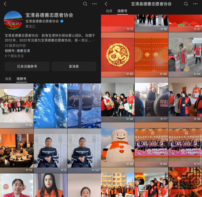 最后,本次公益实践活动的全过程,均在宝清县德善志愿者协会微信视频号进行了详细且生动的记录,宣传成效显著。这些视频在微信视频号被多次转发,形成了良好的传播效应。不仅让更多人了解到宝清县开展的这些公益活动,吸引了社会各界对弱势群体的关注,也让传统文化和历史知识得到更广泛的传播,激发了大众对传统文化的热爱和对历史探索的热情。