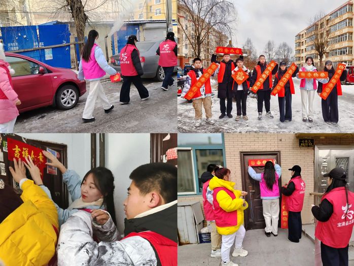 因为在快节奏的现代生活中,居民对精神文化的需求日益增长所以团队在春节前夕,在宝清县多个社区热闹开展了活动二“迎新春,贴对联”活动。邀请当地书法名家和志愿者共同书写春联 30余副,走进贫困家庭、养老院,为居民们张贴春联,传递新春祝福,活动吸引众多居民参与,营造出浓厚的节日氛围。