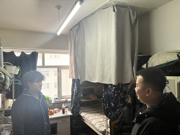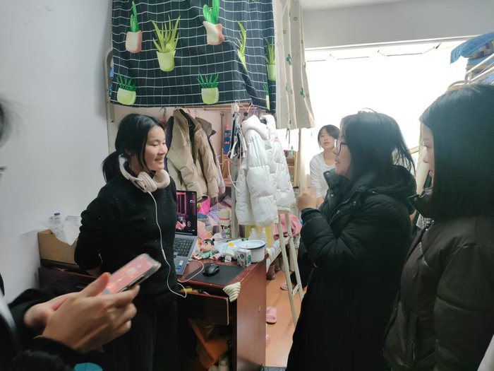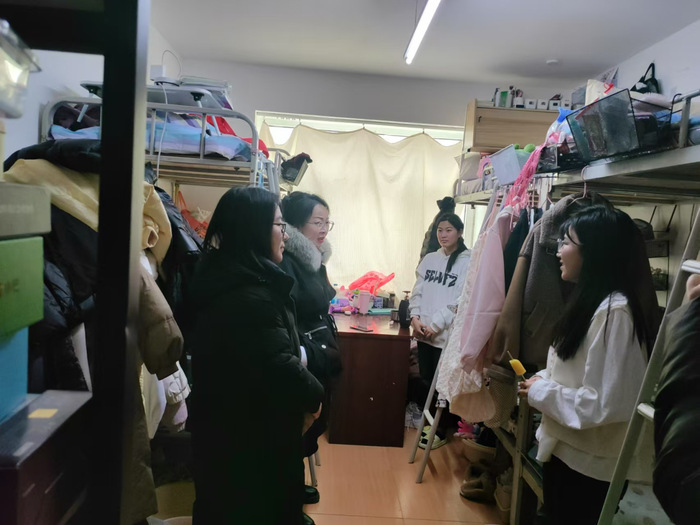 查寝过程中,梁平叮嘱同学们:新学期要调整状态投入学习,生活或学业上有困难随时向公司反映。辅导员们与员工交流假期生活和新学期计划,重点检查了宿舍用电安全、卫生环境等情况,强调宿舍安全人人有责,要共同维护'家'的环境。