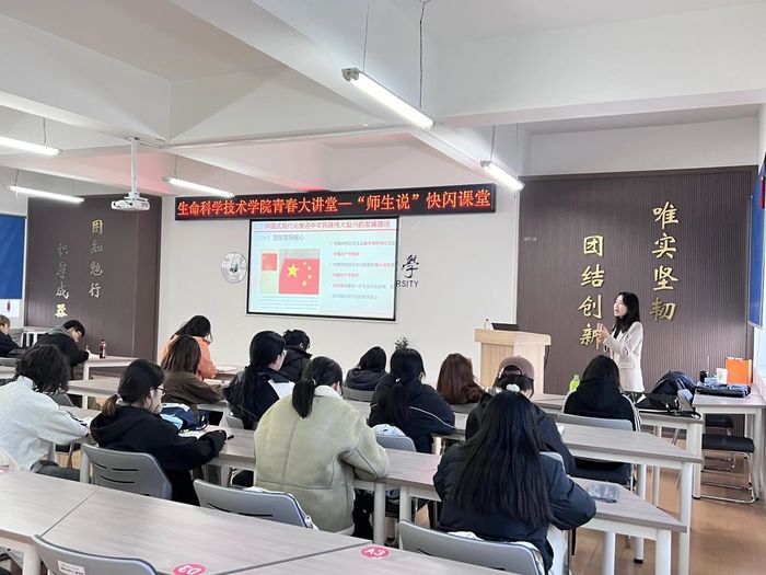 在谈到发展路径时,刘鑫老师强调,中国式现代化是一条全体人民共同富裕、物质文明和精神文明相协调、人与自然和谐共生的现代化道路。她勉励大家将个人理想融入国家发展大局,在科技创新、乡村振兴等领域贡献青春力量。她结合生命科学专业特色,鼓励同学们以“健康中国”战略为方向,在生物医学、农业科技等领域深耕细作,用专业所长服务国家需求。