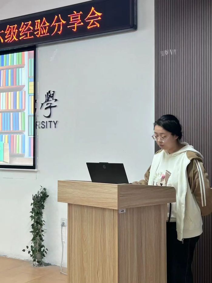 第二位进行分享的是韩字珺同学,她向同学们分享了关于词汇背诵的技巧,如使用百词斩、词根词缀法、单词卡片法、联想记忆法等。这些方法可以帮助同学们更高效有力的掌握四六级词汇,也让同学们知道了词汇可以让表达更加生动、准确。