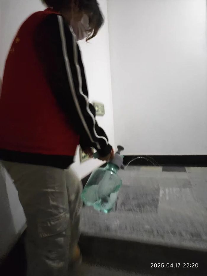 预防我拿手,防御我在行。志愿者对寝室、走廊、公共洗漱区、门把手等高接触区域进行重点消杀,采用含氯消毒液进行喷洒与擦拭,确保不留死角并提醒寝室人员通风三十分钟。志愿者们认真负责,对寝室进行全方位消杀,使细菌病毒无处可逃,为同学们的健康保驾护航。另外提醒同学们也要未来的生活中保持寝室卫生,提高自我防范意识。