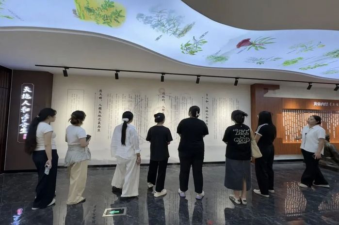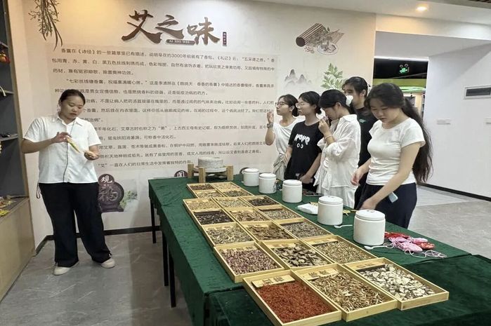 团结一心实践小队,踏入了仙草齐艾园,头顶是绘有草药图谱的穹顶,与墙面“天地人和话苍生”的养生哲思相呼应。在园区工作人员的引领下,队员们深入了解了艾草的生长特性及其炮制工艺,并探究了“药用-养生-文创”的全链条开发模式。此行不仅让他们深刻体会到传统中医药文化在当代的创新与发展,更坚定了他们传承和弘扬中医药文化的坚定信念。