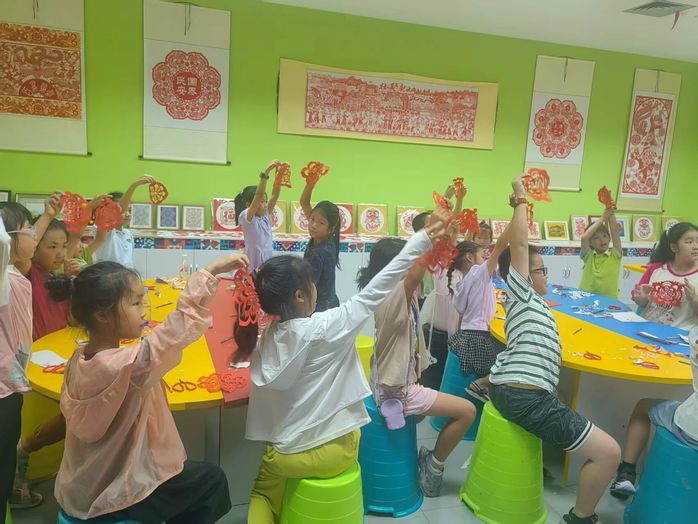 都行实践小队,来到广西科技馆参与剪纸文化志愿活动。队员们先从折纸、握剪等基础技法学起,随后化身温柔耐心的志愿老师,手把手教小朋友们剪纸;在“学”“教”互动中,队员们既提升动手能力,更从剪纸的对称与镂空之美里,感悟其承载的民俗记忆与传统审美。
